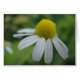 Eine grosse, selvagem wachsende Kamillenblüte mit schön gemustertem gelben Blütenzentrum und sieben weissen Blütenblättern vor grünem Hintergrund ziert diese Grusskarte. Morre Karte ist blanko.