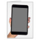 Entregue manter um phablet de 8 polegadas isolado no fundo branco