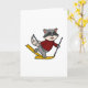 Cartão Guaxinim como esquiador com esquis e bastões de es