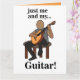 Guitarist Playing Guitar Birthday Card originally designed by Nisha Prabhu. A vibrant birthday card featuring a talented guitarist passionately playing an acoustic guitar. The scene shows the guitarist immersed in music. The card has a warm, celebratory feel, perfect for music lovers and guitar enthusiasts.
