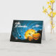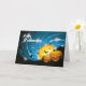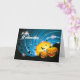 O cartão de saudação é mostrado com um festivo impressão de abóboras assustadoras do Halloween. Personalize este cartão ou comprar como está. Imagens de Ações vecteezy.com
