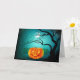 O cartão de saudação é mostrado com um festivo impressão de abóboras assustadoras do Halloween. Personalize este cartão ou comprar como está. Imagens de Ações vecteezy.com