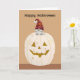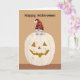 Abóbora bege de Halloween com Gnomo bonitinho num chapéu de Halloween. O fundo é ouro bronzeado. Obrigados para Creative Fabrica para o design do Gnome. As palavras na dentro da placa podem ser alteradas.