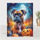Prepare seu amigo peludo para se divertir muito com este adorável design de Halloween inspirado em cães! Com um cão assustador com abóboras, este design é perfeito para donos de animais que desejam incluir seus familiares de quatro patas