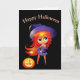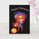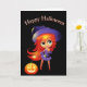 O cartão de saudação é mostrado com uma impressão de bruxa fofa de Halloween. Personalize este cartão ou comprar como está.