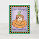 Mande saudações de Halloween com este cartão de um cachorrinho bonitinho de Cav num sorridente Jack-o-Lanterna. Excelente para crianças de todas as idades que amam Cavalier King Charles Spaniels e Halloween. Tenha uma boa HOWL-oggy!