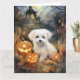 Cartão Halloween Coton De Tulear Com Abóboras Assustador