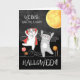 Se você ama enviar cartões de Dia das Bruxas, então você vai adorar esse cartão de vocês dois com gatos bobos vestidos de fantasias bonitinhas em truques ou tratamentos.