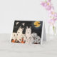 White German Shepherd dog family with ghosts, bats, pumpkins glowing in the moonlight on Halloween
