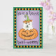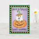 Mande saudações de Halloween com este cartão de um filhote de Eskie fofo num sorridente Jack-o-Lanterna. Excelente para crianças de todas as idades que amam cães esquimós americanos e Halloween. Tenha uma boa HOWL-oggy!