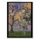 Esqueleto segurando lanterna caminhando por uma árvore à noite.