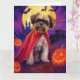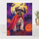 Cartão Halloween Lhasa Apso Vampiro Pumpkins assustado