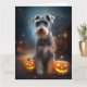 Cartão Halloween Schnauzer Com Pumpkins Assustado