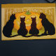 Cartão Halloween Vintage Gatos Pretos e Jack O'Lantern