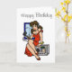 As garotas dos anos 50 ainda são populares. Esta é a nossa garota do Pin-up da Rádio Ham com Brunette Hair, enquanto ela se senta em uma plataforma e diz o que você quer que ela faça. Por acaso fazemos deste cartão uma saudação de aniversário. Mas, você pode mudar para o que quiser na frente e na dentro também.