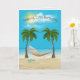Hammock pendurado entre duas palmeiras com estrelas-do-mar e flip-flops na areia da praia do oceano com nuvens de verão no 27º aniversário. A idade pode ser alterada.