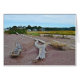 A imagem nesta placa mostra a madeira derivada e a bela areia roxa na praia de Hammonasset, em Madison, Connecticut.