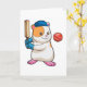 Cartão Hamster no Cricket com bastão e Boné de críquete
