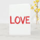 This greeting card is simple with the word “LOVE” as the whole focus. The letters are painted in a deep crimson red, set against a plain white background that makes the message stand out right away. “LOVE” sits across the center of the card in large, hand-painted letters that look like thick brush or crayon strokes. The edges are a bit uneven, with visible streaks and small breaks in the color, which makes it feel personal and honest. There aren’t any characters or extra objects—just the strong message and the contrast between red and white. The text is all uppercase and looks more like hand lettering than a neat printed font, giving it a heartfelt, direct tone. It feels like a simple note meant to say a lot, perfect for romance or close friendship ❤️💌🍫.