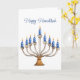Cartão Hanukkah Menorah com Velas Azuis e Brancas Queiman
