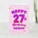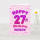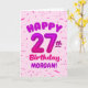 Celebrate their 27th birthday with a bright, cheerful, and personalizable birthday card! This custom name birthday card features a bold number twenty-seven balloon and colorful confetti.