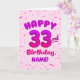Celebrate their 33rd birthday with a bright, cheerful, and personalizable birthday card! This custom name birthday card features a bold number thirty-three balloon and colorful confetti.