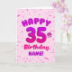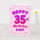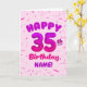 Celebrate their 35th birthday with a bright, cheerful, and personalizable birthday card! This custom name birthday card features a bold number thirty five balloon and colorful confetti.