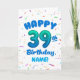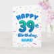 Celebrate their 39th birthday with a bright, cheerful, and personalizable birthday card! This custom name birthday card features a bold number thirty nine balloon and colorful confetti.