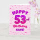 Celebrate their 53rd birthday with a bright, cheerful, and personalizable birthday card! This custom name birthday card features a bold number fifty-three balloon and colorful confetti.