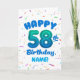 Cartão Happy 58th Birthday Card with Custom Name