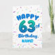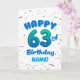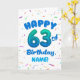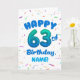 Celebrate their 63rd birthday with a bright, cheerful, and personalizable birthday card! This custom name birthday card features a bold number sixty-three balloon and colorful confetti.