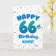 Celebrate their 66th birthday with a bright, cheerful, and personalizable birthday card! This custom name birthday card features a bold number sixty-six balloon and colorful confetti.