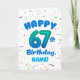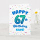 Celebrate their 67th birthday with a bright, cheerful, and personalizable birthday card! This custom name birthday card features a bold number sixty-seven balloon and colorful confetti.