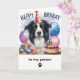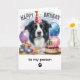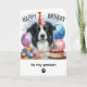 This birthday card features a charming Border Collie dog with a birthday cake and balloons, making it a festive celebration. Include a special message inside, all from the dog! Perfect for any Border Collie lover. "AI-generated artwork with design direction by Susang6"