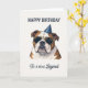 Celebrate his birthday with this hilarious and charming English Bulldog greeting card. Featuring a "cool dude" bulldog design, this masculine card is perfect for dog dads, brothers, or any bulldog lover. Whether he's a fan of the breed or just appreciates a good laugh, this high-quality card is the perfect way to say Happy Birthday. Fully customizable inside for your personal message.