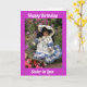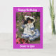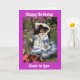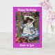A cute little black doll in Victorian style dress among flowers with the text Happy Birthday sister in law