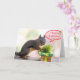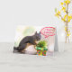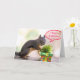 Um esquilo sorridente tenta soltar um presente brilhante nesta foto original. As palavras "Parabéns" estão em uma bolha de discurso.
