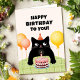 Cartão Happy Birthday to you with black kitten and cake