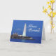 Beautiful blue card is very striking with the lighthouse on the ocean.