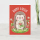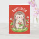 Cartão Happy Easter Cute Hedgehog Holding Strawberry