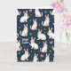 This card features a repeating pattern of stylized white rabbits on a deep navy background, creating a cozy nighttime contrast that makes each figure stand out 🐰. The rabbits have bright blue eyes with soft pink touches on their noses and inner ears, and their gentle smiles feel like they’re sharing a private joke with someone close. Some are shown waving, others winking, and a few lean toward one another as if in a friendly nuzzle, adding a hint of romance or close companionship. Small silver-white dots are scattered around like tiny sparkles, and little bows in pale pink and light blue add a sweet, tender accent 🌷. The lighting looks softly diffused, giving the rabbits a plush, glowing texture without harsh shadows. “Happy Easter” appears integrated into the design, placed so it sits comfortably among the figures in a light, silvery white tone. Around the lettering, the navy space is dotted with more tiny sparkles and a couple of bows tucked between rabbit ears.