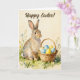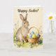 Cartão Happy Easter Vintage Bunny with Egg Basket