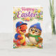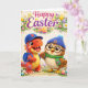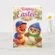 Cartão Happy Easter with Rex and cute dinosaur and owl sp