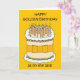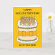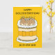 A large goldn birthday cake covered in lit candles and accompanied by the words 'Happy Golden Birthday 26 on the 26th'.