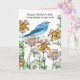 Happy Mother's Day greetings to a mother-in-law to be decorated with a bright bluebird on a branch within a group of colorful wildflowers with orange gaillardia and pink daisy flowers hand drawn with black ink and watercolor. On the inside is a shade of soft pink, more flowers, and text you can edit to fit your needs.