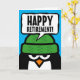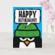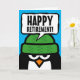 Greeting card with cute penguin cartoon and speech bubble / comic text balloon.