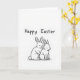 This card features two upright bunny characters on a bright white background, drawn with simple black outlines and soft details 🐰. One bunny stands slightly in front and gives a small wink, while the other leans in close behind with a gentle, steady gaze that suggests a sweet bond. Their ears show a light pink tint inside, adding a tender touch without crowding the open space. A seasonal greeting sits above the pair in a flowing, casual lettering style, set in dark ink that stands out clearly against the white. The layout guides your eyes from the bunnies’ expressions up to the message, keeping everything easy to take in at a glance. A faint gray shadow beneath their feet anchors them to the page, so the scene feels grounded rather than floating. The overall look stays airy and calm, with the two figures positioned near the center and plenty of white space around them 🌷. The front bunny’s wink is framed by crisp black lines, and the second bunny’s face peeks just over the first bunny’s shoulder.