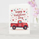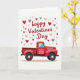 This lovely picture shows a heartwarming scene that captures the essence of Valentine's Day. In the center, there's a classic red pickup truck that stands out with its bright red color against a white background. The truck looks nostalgic with its curved fenders and shiny chrome details, bringing to mind simple, heartfelt gestures of the past. Above the truck, there's a graceful script that reads "Happy Valentines Day" in bold red letters, adding to the message of love. The top of the picture is decorated with lots of hearts in shades of deep red, soft pink, and light teal, creating a feeling of love in motion. The truck's solid presence below and the floating hearts and text above are perfectly balanced, making the whole image feel both festive and sweet. A subtle shadow under the truck adds a touch of realism to the otherwise whimsical declaration of love. Overall, the picture radiates joy and gentle romance, making it a perfect choice for sharing Valentine's Day feelings ❤️💌🍫.