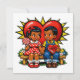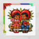 A sweet vintage style retro boy and girl holding hands holding lollipops and chocolates Valentine's Day card. On the back is a poem you can leave or personalize. The girl and boy in this illustration are African-American.