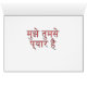 "मु झे म प् तु या सेरहैs - "Eu te amo" em Híndi. Dê este belo cartão ao Dia de os namorados ou sempre que quiser expressar seu amor. Um rosa solteiro de uma planta se destaca contra um fundo avermelhado.